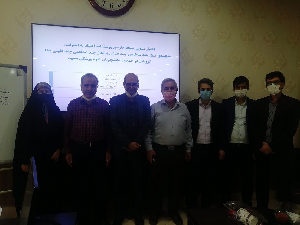 جلسه دفاع از پایاننامه ارشد خانم فاطمه عسکریان در تاریخ 14 مرداد ماه ساعت 10، با موفقیت برگزار گردید. عنوان پایاننامه ایشان "اعتبار سنجی نسخه فارسی پرسشنامه اعتیاد به اینترنت: مقایسه ی مدل چند شاخصی چند علیتی با مدل چند شاخصی چند علیتی چند گروهی در جمعیت دانشجویان علوم پزشکی مشهد" بود. در این جلسه، خانم دکتر ساکی، جناب آقای دکتر حسن غلامی و آقای دکتر اخلاقی بهعنوان داوران پایاننامه حضور داشتند. راهنمایی این پایان نامه به عهده جناب آقای دکتر جمشید جمالی و مشاوره جناب آقای دکتر محمدتقی شاکری و جناب آقای دکتر وحید قوامی بود. ضمن عرض تبریک بابت ارائه خوب خانم عسکریان، برای ایشان آرزوی موفقیت و سربلندی داریم.![]()